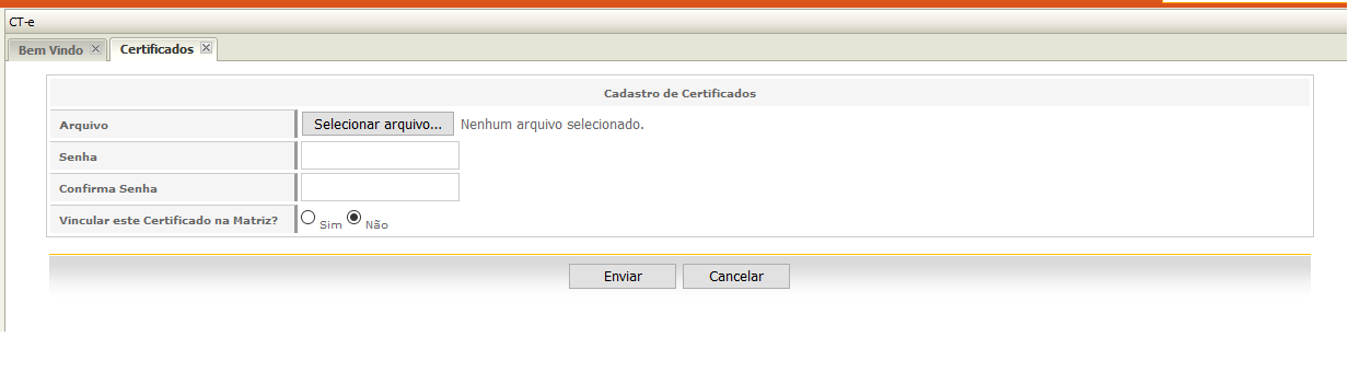 Após completado o formulário, clique em enviar. Pronto, seu certificado foi importado.