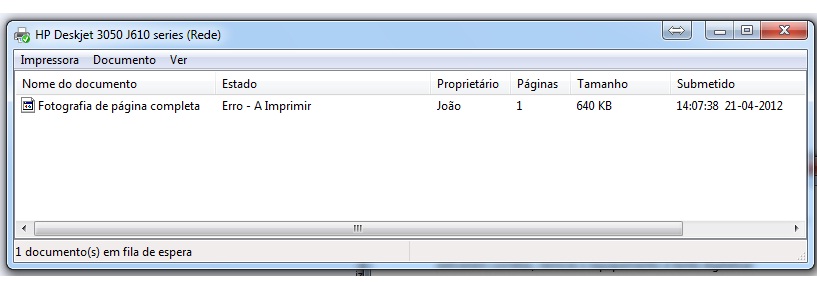 - Erro ao imprimir (tela da fila de impressão):