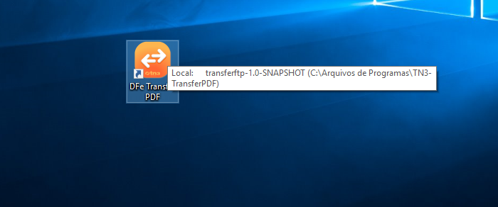 Após isso, é necessário abrir o aplicativo novamente, dando duplo clique no ícone corresponde ao aplicativo TN3-TransferPDF, conforme print abaixo. Caso não exista o atalho do aplicativo em sua área de trabalho, costumamos instalar o aplicativo no diretório como no print.