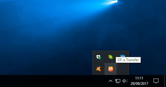 Caso o transfer estiver ativo, o ícone irá aparecer ao lado do relógio do windows, algumas vezes como caso abaixo, será necessário clicar na “seta” para expandir e aparecer demais ícones. Caso não esteja aparecendo ali, o mesmo estará fechado, sendo necessário executar novamente.